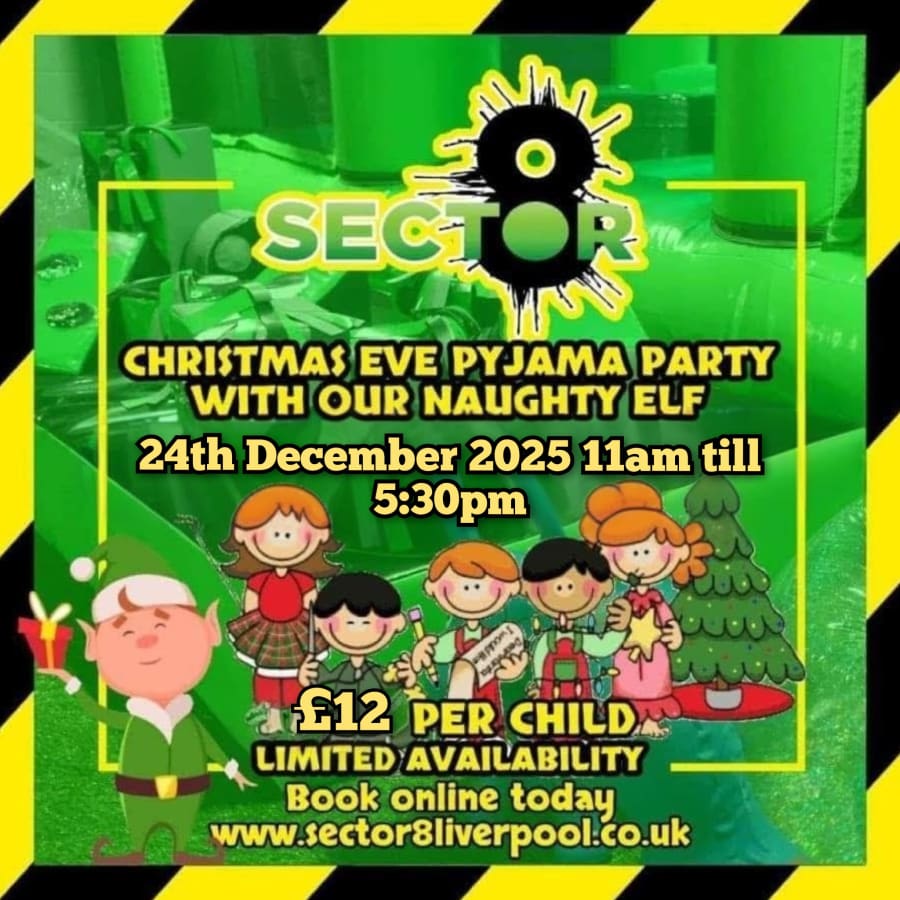 💚Who’s ready for our Christmas Eve Pj Party & Bounce at Sector 8 Liverpool 😊 the naughty ELF and will be causing mischief ! Please Book in ASAP as limited spaces! Just pick your time Slot that suits you 😊